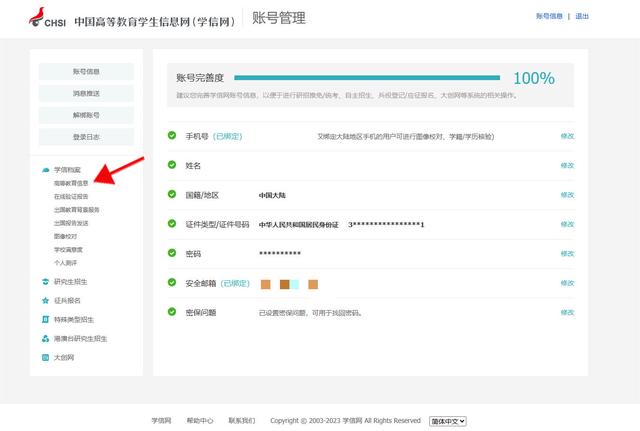 4、点击高等教育信息。