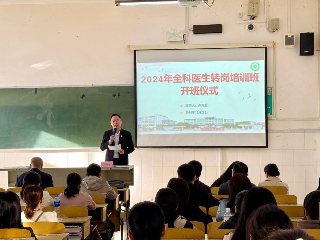 为深入贯彻落实自治区卫生健康委《关于做好2024年广西全科医生转岗培训工作的通知》文件要求,做好广西全科医生队伍建设工作,11月28日,我校顺利完成2024年全科医生转岗培训班报到工作。11月29日上午,bw必威西汉姆联继续教育学院在阶梯教室举行2024年全科医生转岗培训班开班仪式,仪式由班主任卢海源老师主持,院长黄敬文、教师代表、全体学员参加。